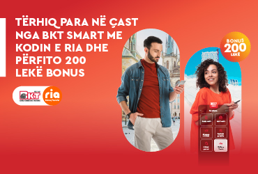 Receive money instantly from your loved ones by withdrawing it through BKT Smart using your RIA code and earn a 200 ALL/ 2 EUR / 2 USD / 2 BONUS on your first transaction.