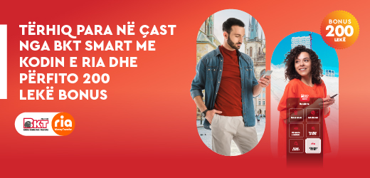 Receive money instantly from your loved ones by withdrawing it through BKT Smart using your RIA code and earn a 200 ALL/ 2 EUR / 2 USD / 2 BONUS on ...