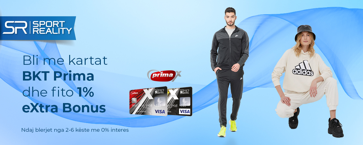 Blini me kartat e kreditit BKT Prima në Sport Reality dhe përfitoni 1% eXtra Bonus në blerjet tuaja! Gjithashtu ju mund të paguani duke përdorur pikët e akumuluara eXtra Bonus dhe ti shpenzoni pranë dyqaneve të Sport Reality. 1 pikë eXtra Bonus = 1 Lekë.