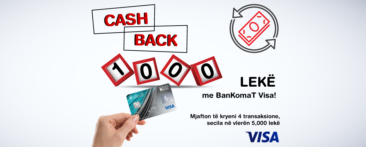 Mjafton të kryeni 4 transaksione, secila në vlerën 5,000 lekë dhe fitoni 1,000 lekë CASHBACK. Do të konsiderohen të vlefshme të gjitha transaksionet e kryera në POS fizik dhe online të gjithë bankave, brenda dhe jashtë vendit.
