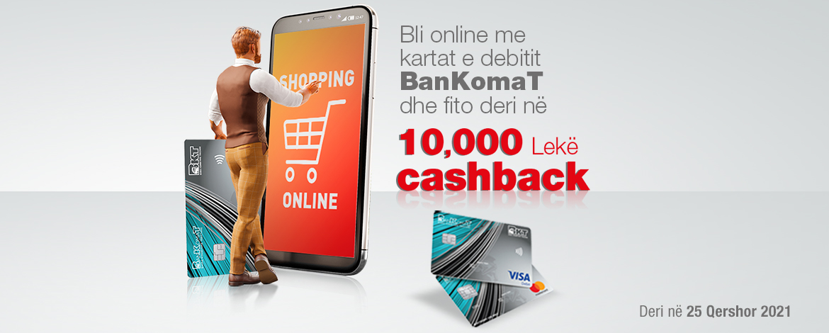 Kryeni transaksione me kartat BanKomaT ONLINE dhe do të shpërbleheni me CASHBACK sipas skemës së mëposhtme: