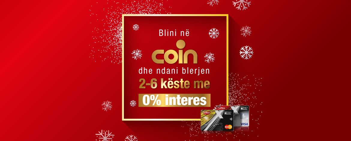 Blini me kartat e Kreditit BKT Prima në COIN dhe ndani blerjet nga 2-6 këste me 0% interes! E vlefshme në të gjithë dyqanet brenda qendrës COIN!