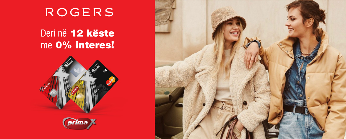 Blini me kartat e kreditit BKT Prima në ROGERS dhe ndani blerjet nga 2-12 këste me 0% interes! E vlefshme në dyqanet ROGERS Toptani dhe City Park!