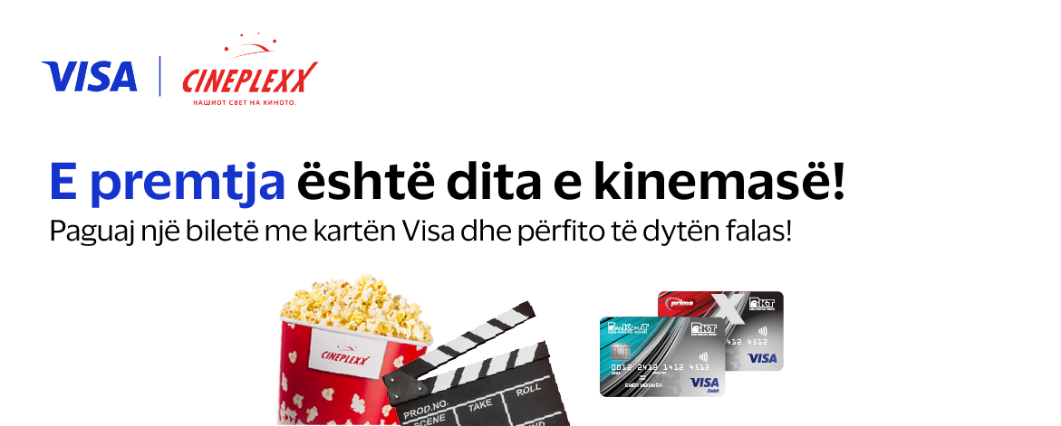 Filmat e mirë jua bëjnë jetën tuaj më të bukur dhe për të gjithë dashamirësit e filmave, të shkosh në kinema është gjithmonë një eksperiencë e veçantë. Për këtë arsye, Visa ka krijuar një ofertë të veçantë për të gjithë mbajtësit e kartave Visa. Mos e humbisni mundësinë për të ndjekur aventurat e heronjve tuaj të preferuar të filmave në ekranin e madh në Cineplexx çdo të premte dhe të përfitoni nga të gjitha avantazhet që ju ofron Visa deri në 31 dhjetor 2025!