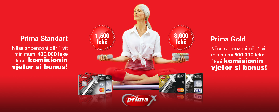 Duke shpenzuar gjatë nje viti me kartat Prima Standard minimumi 400,000 ALL dhe ato Gold 600,000 ALL atëhere do të fitoni komisionin vjetor të kartës si Bonus.