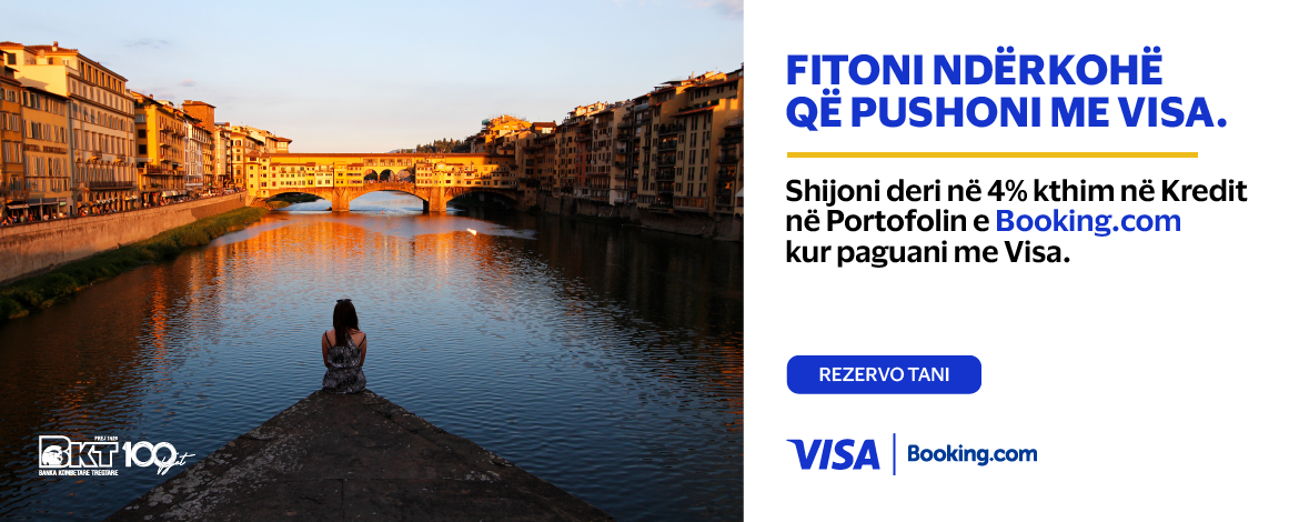 Merr deri në 4% kthim në Kredit në Portofolin e Booking.com kur paguani me kartat Visa nga BKT.