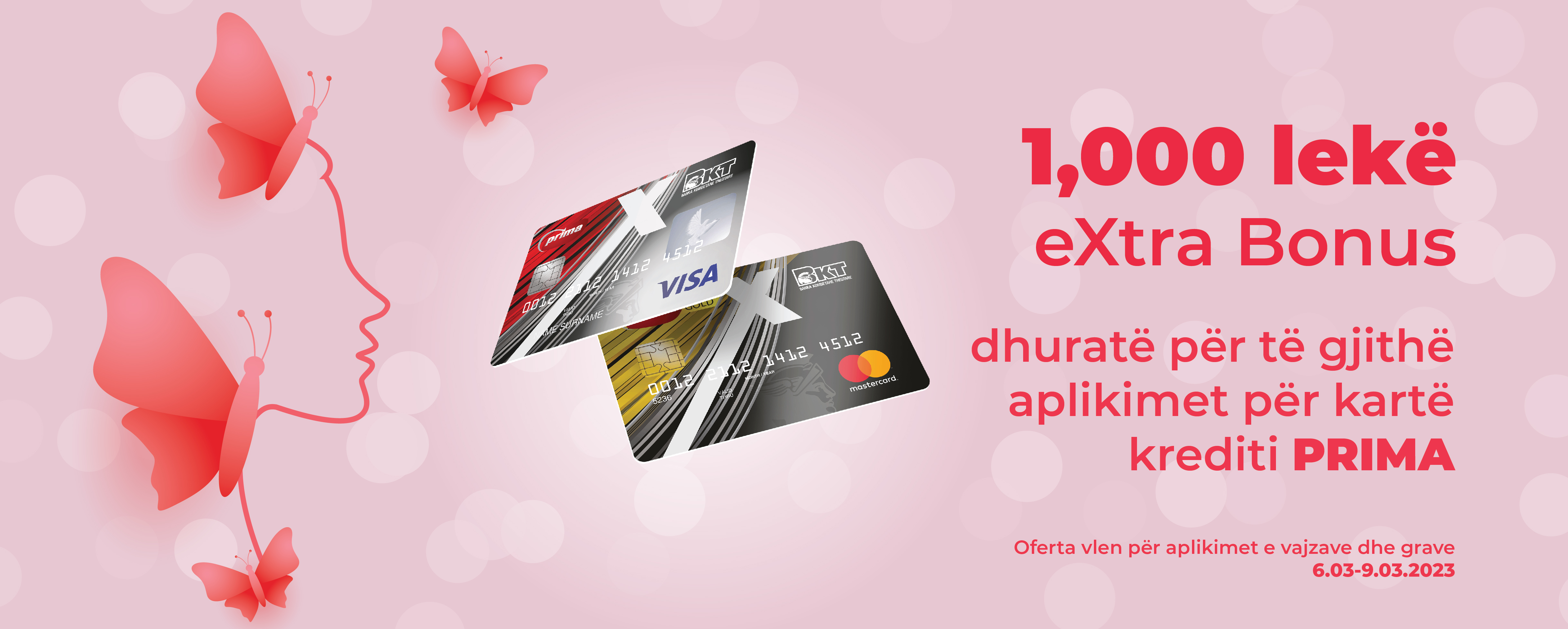 Përfito më shumë eXtra Bonus këtë 8 mars me kartën tënde të re të kreditit BKT Prima!
