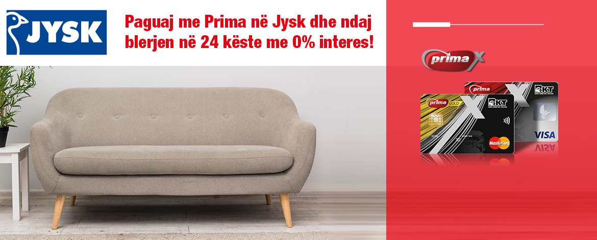 Paguaj me Prima në Jysk dhe ndaj blerjen në 24 këste me 0% interes!