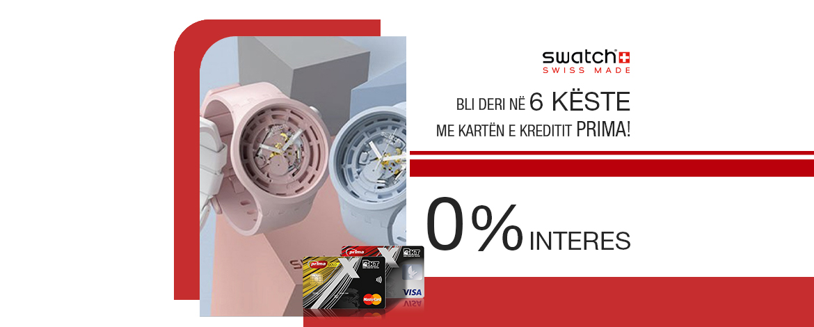 Blini me Kartat e Kreditit BKT Prima në SWATCH dhe ndani blerjet nga 2-6 këste me 0% interes!