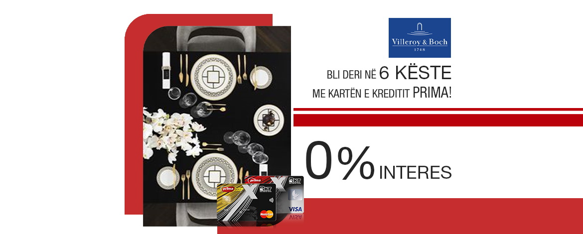 Blini me Kartat e Kreditit BKT Prima në Villeroy-Boch dhe ndani blerjet nga 2-6 këste me 0% interes!